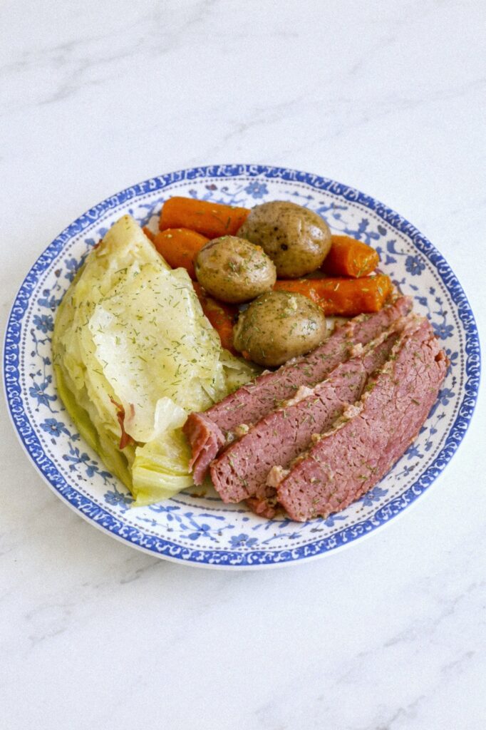 This is the meal I grew up on every St. Patrick’s Day – it’s simple, feeds a crowd, and the slow cooker does all the work. The key is adding the vegetables at different times so nothing gets mushy.