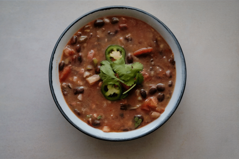 Rinse all four cans of black beans thoroughly in a colander until the water runs clear. If you skip this, the soup will have a muddy, gritty taste from the canning liquid.
