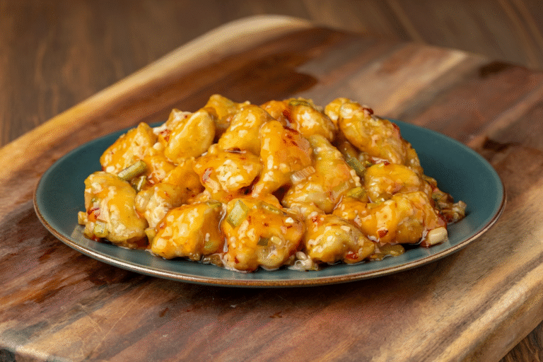 Two hours in alkaline brine is why this chicken stays juicy even after being deep-fried – the baking soda changes the protein structure completely. Potato starch instead of flour for dredging gives you that specific crispy-but-light coating that shatters when you bite it.