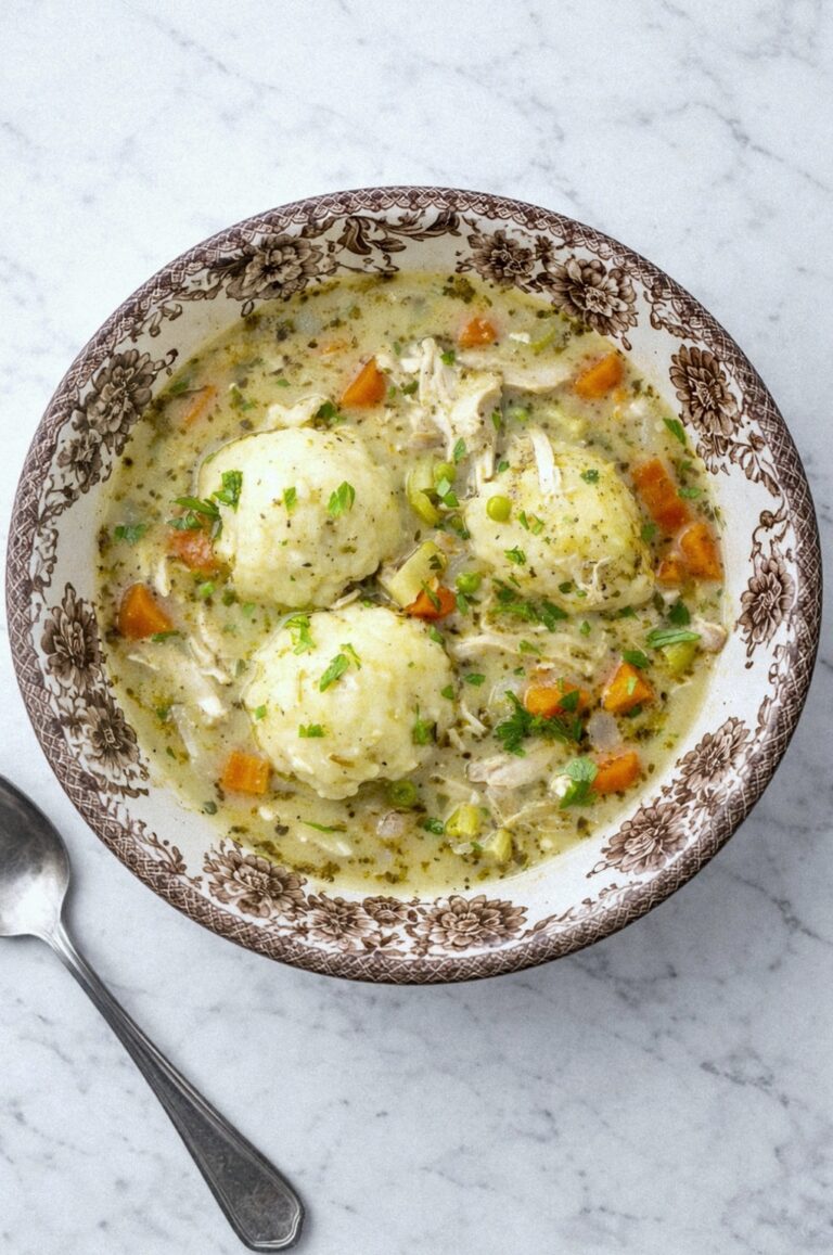 Don’t overmix – you want it just barely combined or the dumplings will be tough.