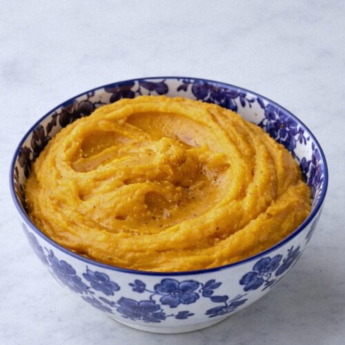 Put the sweet potatoes in a food processor and pulse for ~10 seconds until they start looking smooth.