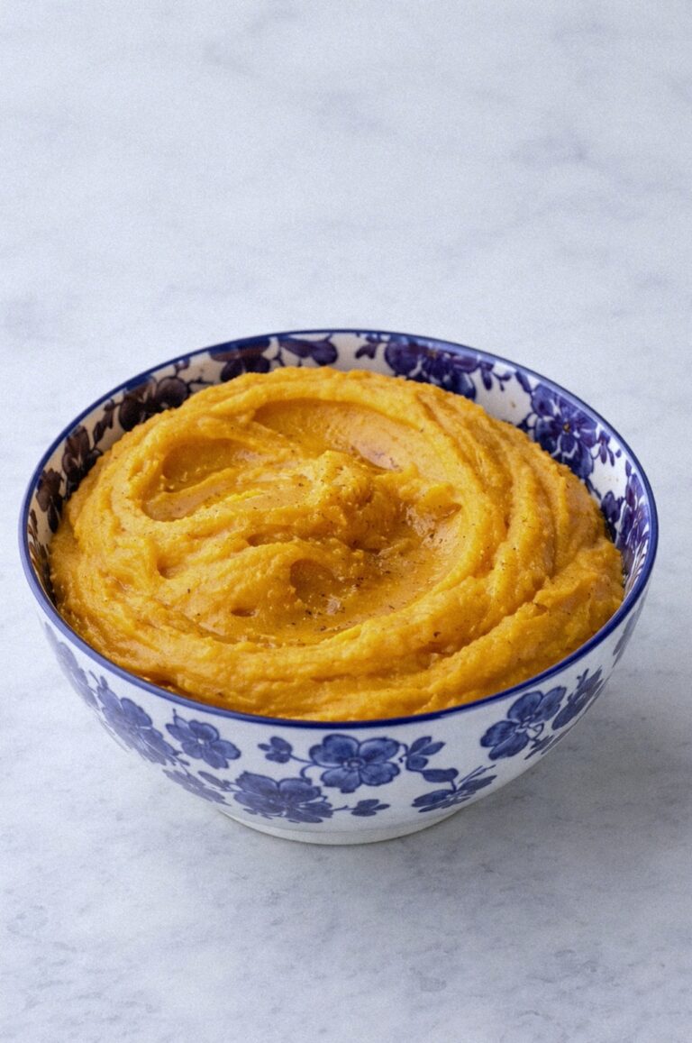Put the sweet potatoes in a food processor and pulse for ~10 seconds until they start looking smooth.