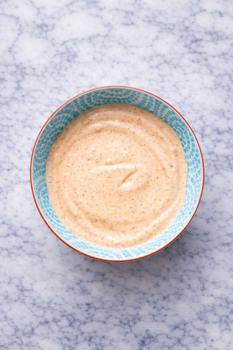 This is a basic chipotle mayo that takes ~5 minutes to make and goes on everything – burgers, tacos, grilled chicken, whatever. I always have chipotle chili powder on hand so this gets made pretty regularly.