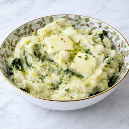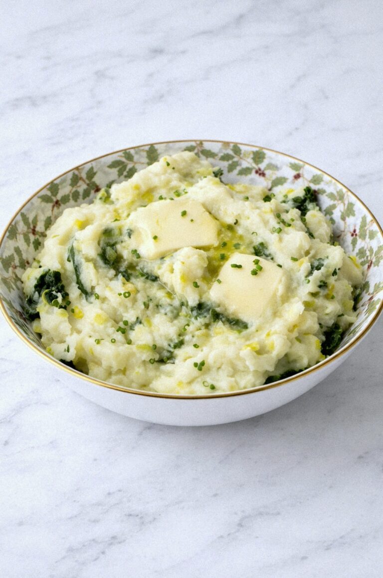Gently fold the sautéed leeks and kale into the mashed potatoes. Mix well until everything is evenly combined.