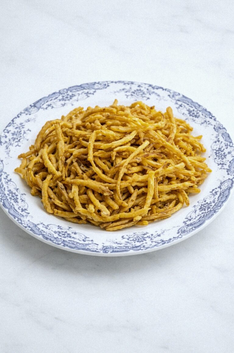 - Fry onions in small batches for 3-5 minutes until golden and crispy, stirring gently to keep separate.
