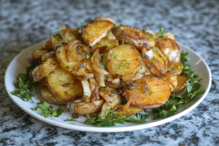 - Cook until potatoes and onions are golden brown and crispy.