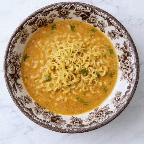 - 3 servings instant ramen any brand with soup base packets