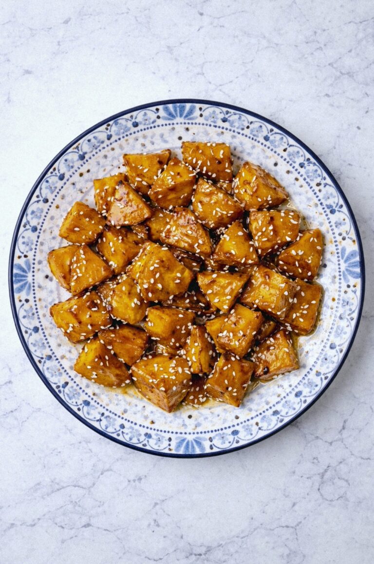 - Let sweet potatoes cool 5 minutes, then toss with glaze to coat.