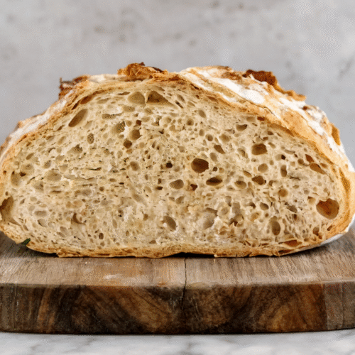Let the bread cool completely on a wire rack for at least 1 hour before slicing. Slicing into it while it’s hot will result in a gummy texture.