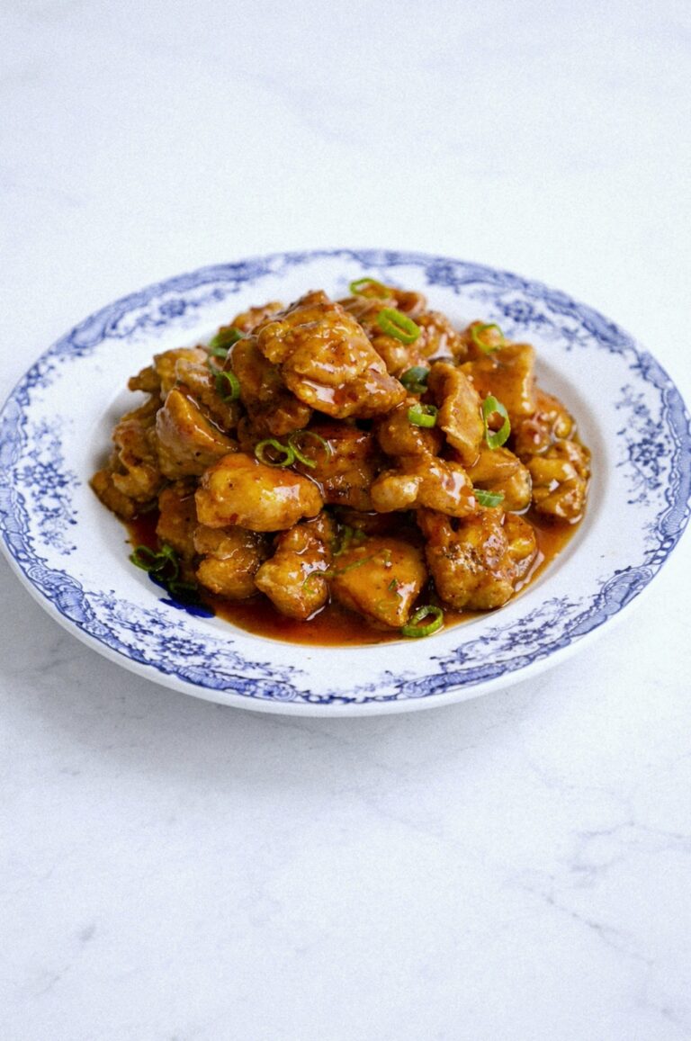 Garnish with the chopped green onions and serve immediately while the coating is still crispy.