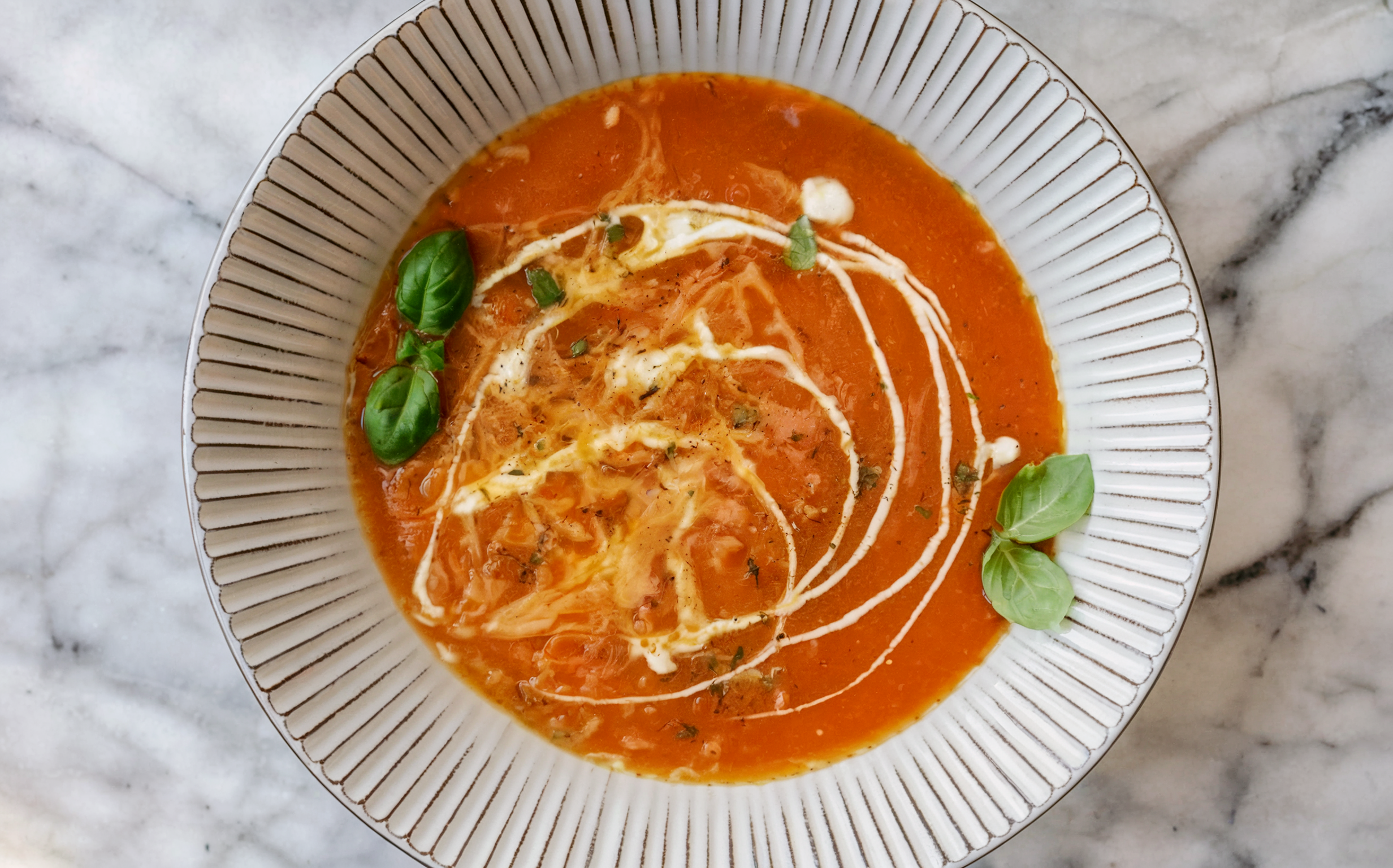 Ladle into bowls and serve with a drizzle of heavy cream, a sprinkle of Parmesan cheese, and a few torn basil leaves.