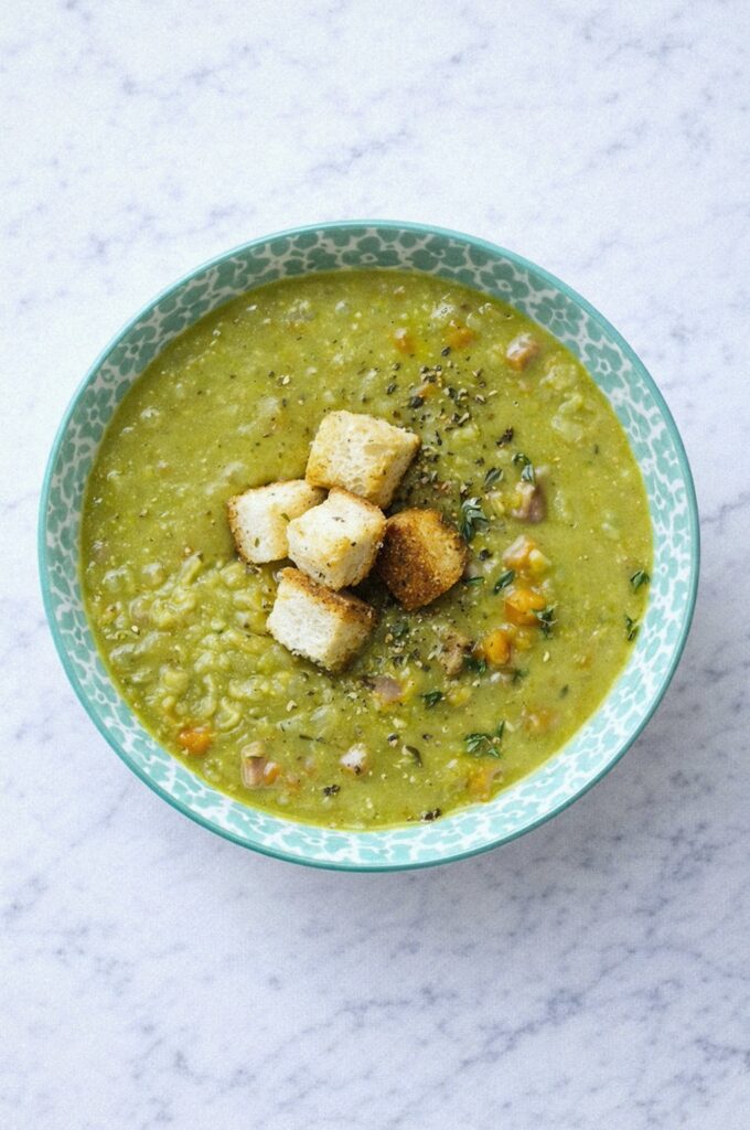 This is one of those soups that gets better as it sits – the split peas break down into a thick, hearty base and the ham bone adds serious depth. I like to make this when I have a leftover ham bone from a holiday dinner.
