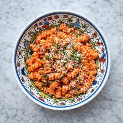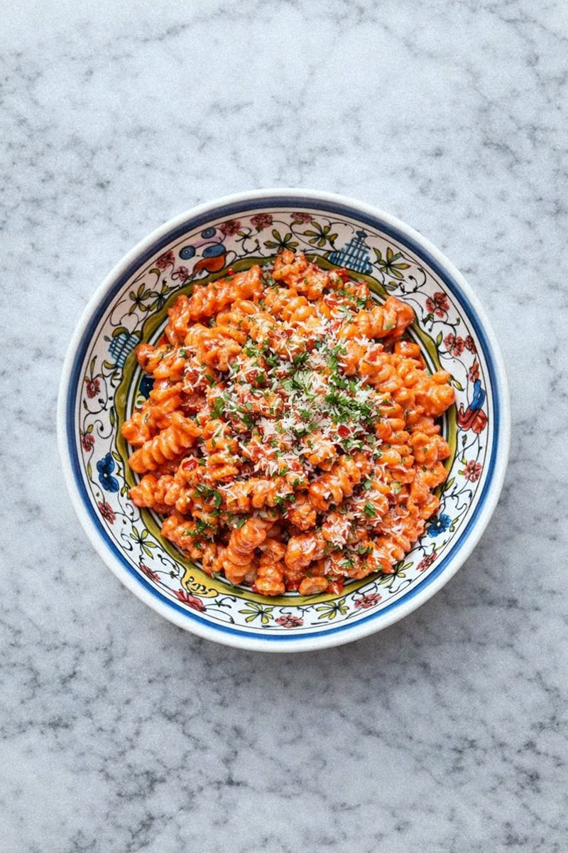 This combines the best of carbonara with vodka sauce – you get the creamy egg base with pancetta plus that slightly sweet tomato flavor. It’s richer than regular carbonara but not as heavy as straight vodka sauce.