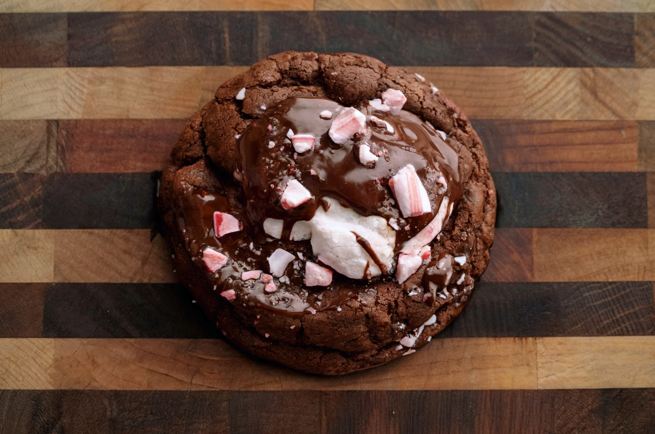- Drizzle melted chocolate over cookies and immediately sprinkle with crushed candy canes.